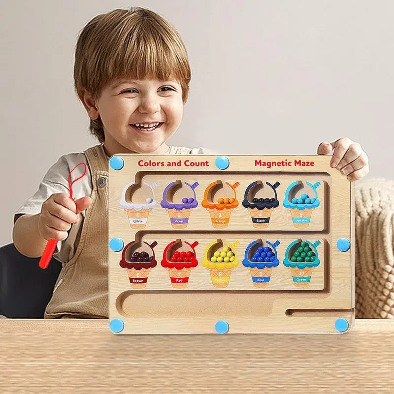Labirint s brojevima i bojama: magnetske društvene igre za malu djecu koja istražuju boje i broje brojeve. Ukupno ima 65 magnetskih kuglica u stazi, 10 vrsta "konzervirane hrane" različitih boja. "Etiketa za limenke" ima reprezentativne brojeve od 1 do 10, izvrsna za djecu koja poboljšavaju finu motoriku. I može naučiti hranu na "konzervi" pod vodstvom roditelja